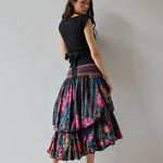 • Beautiful high low midi skirt with smocking details at waist and lined in organic cotton lawn.