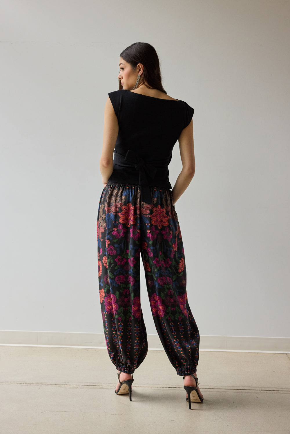 • Easy pull-on harem style pant with smocking details at waist and side seam pockets