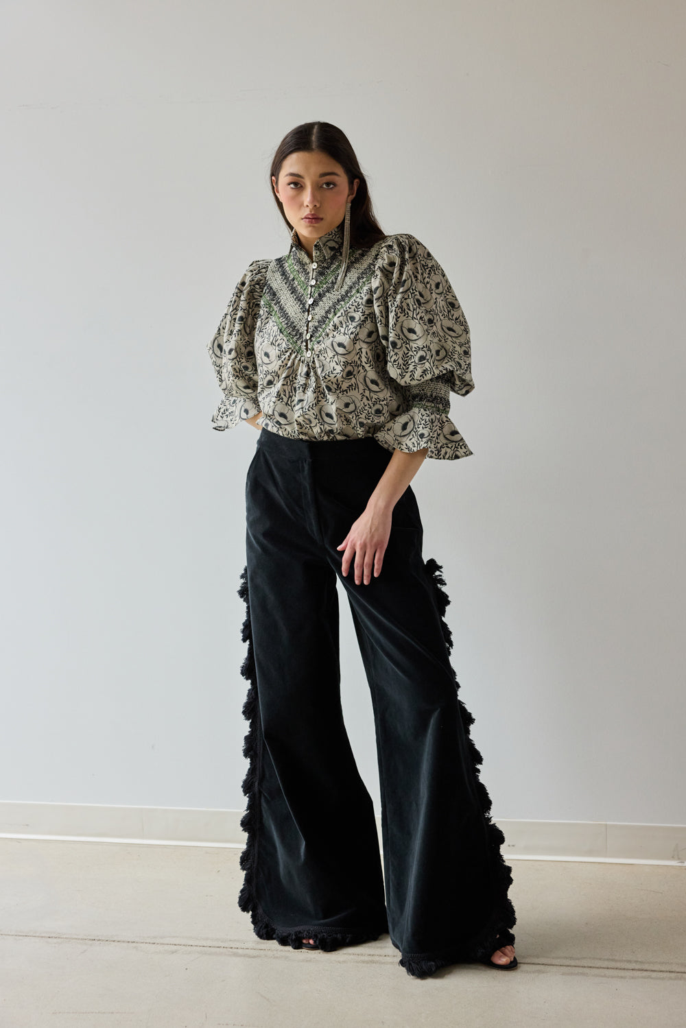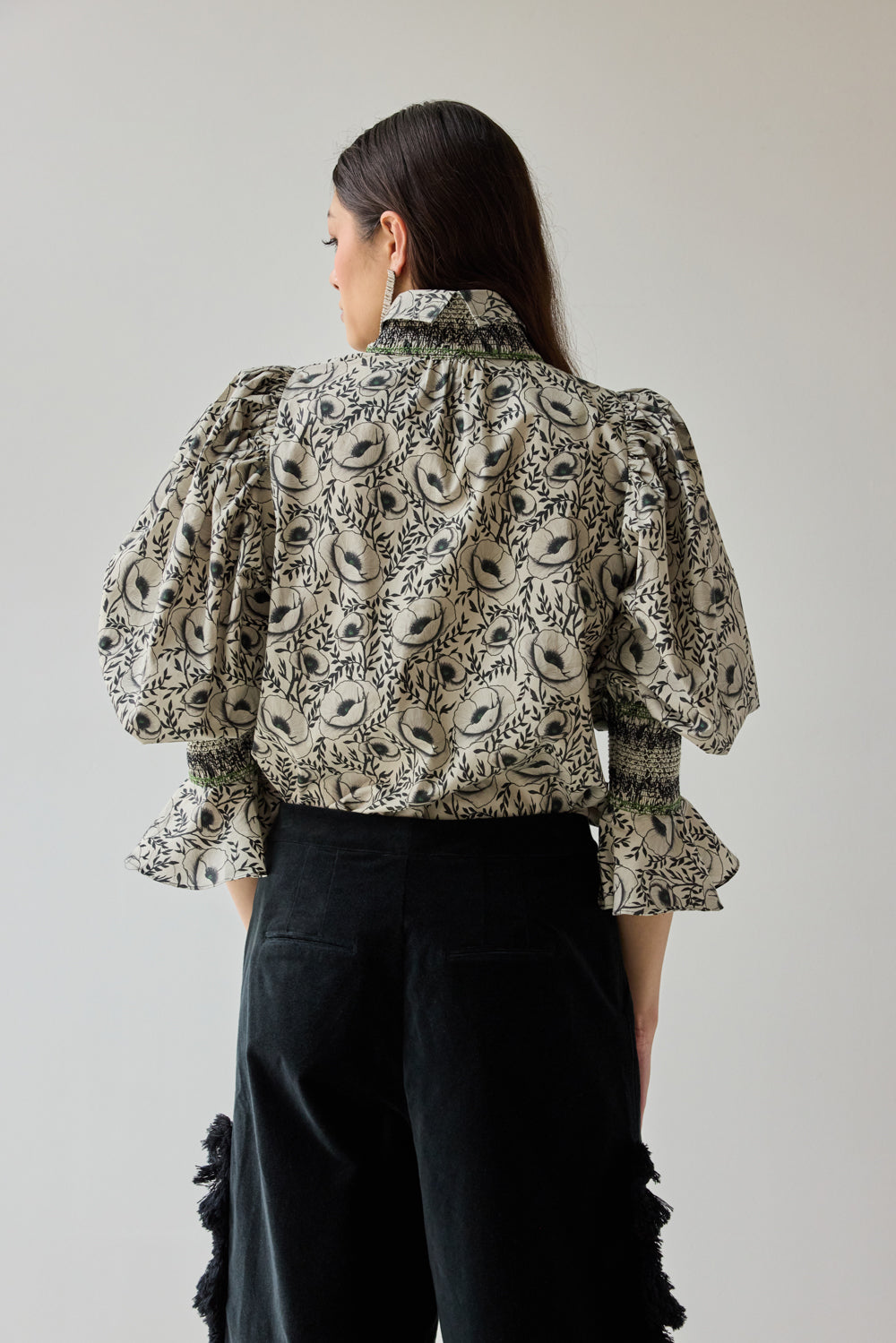 • Our classic Hope for Flowers smocked shirt in a crisp organic cotton poplin has a smocked front yoke and tailored collar details. Full statement sleeves have smocked cuffs.