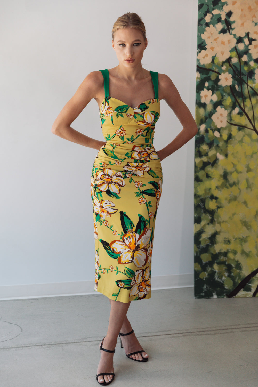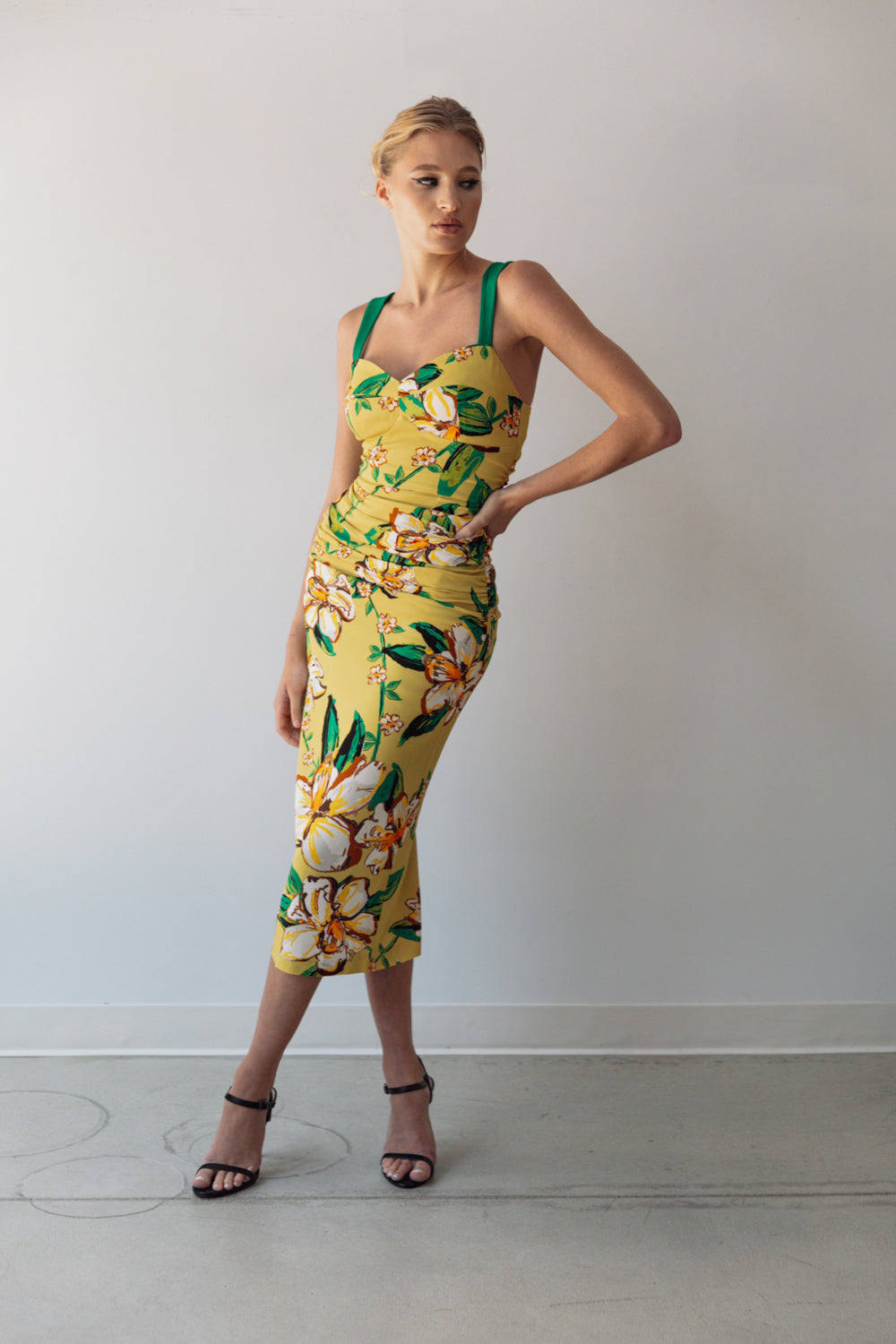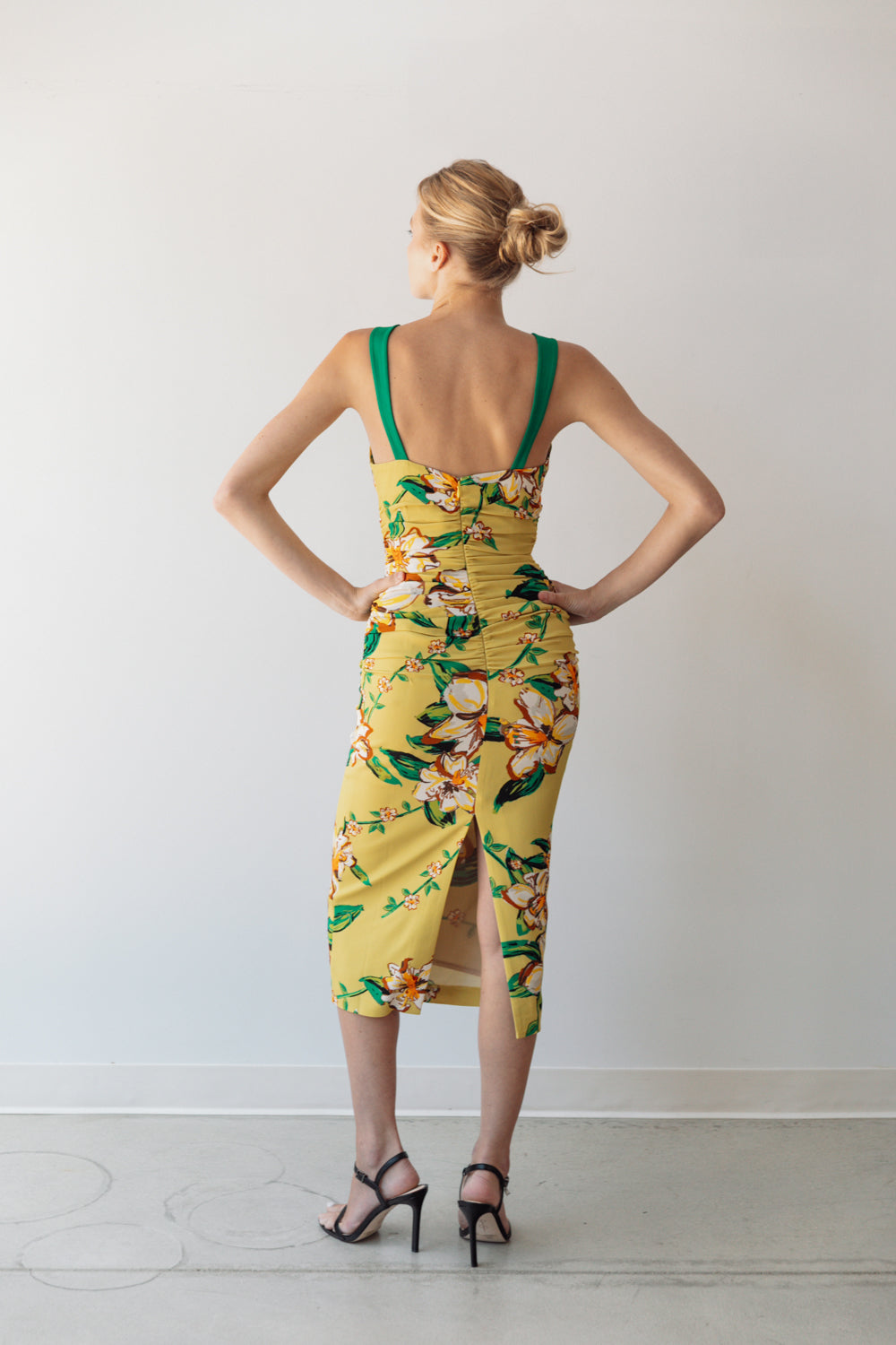 • Our Sophia dress has a sweetheart neckline, shirring at midsection and slit opening at back for walking ease