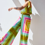 • Relaxed sleeveless blouse that ties at the shoulders and has a zipper at side seam.
