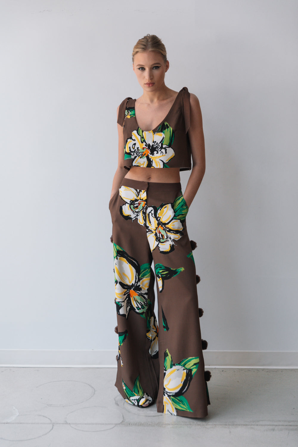 • Relaxed fit pants with Pom Pom detailing at side seams. Off seam pockets at front and fully lined in cotton lawn.