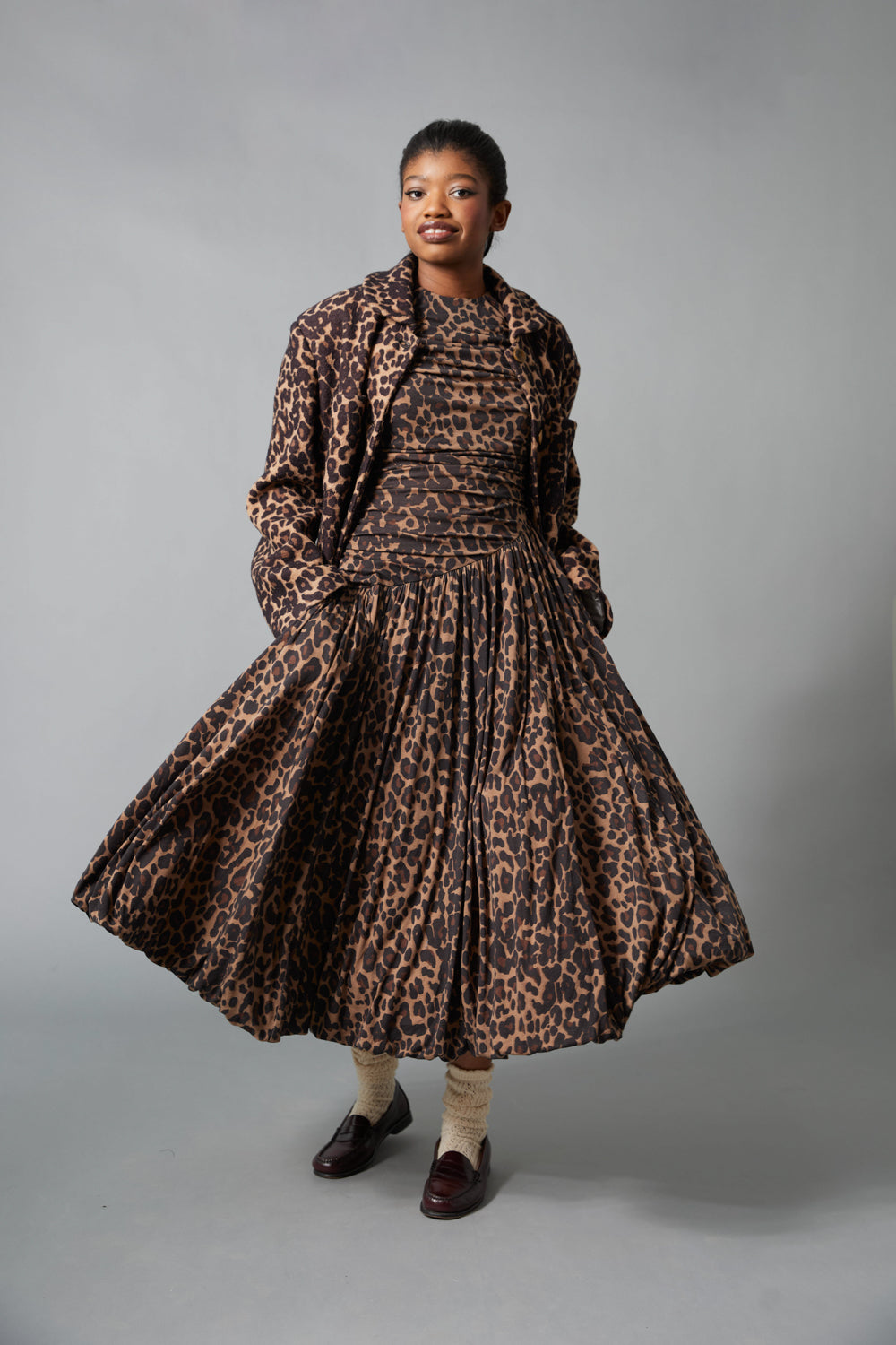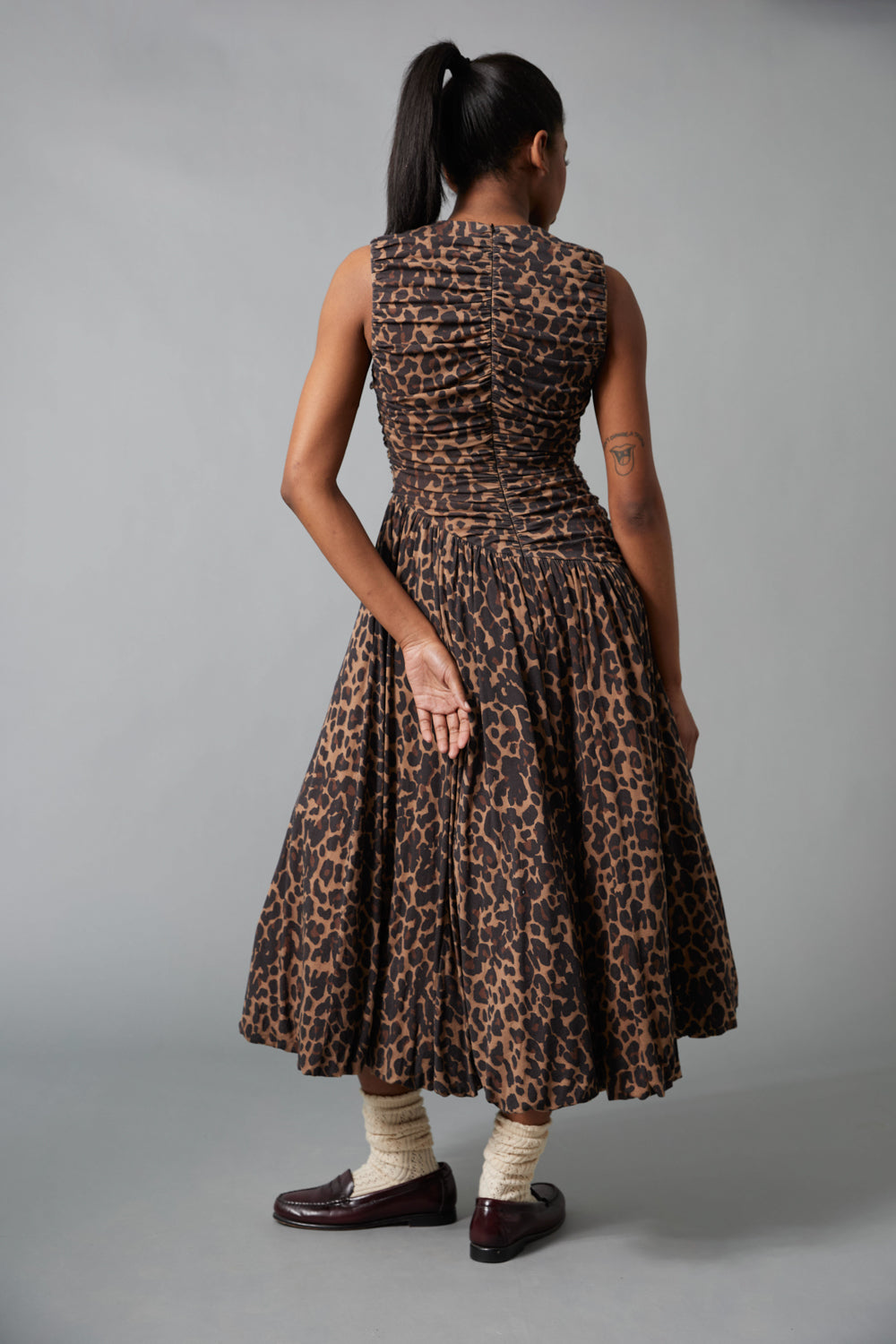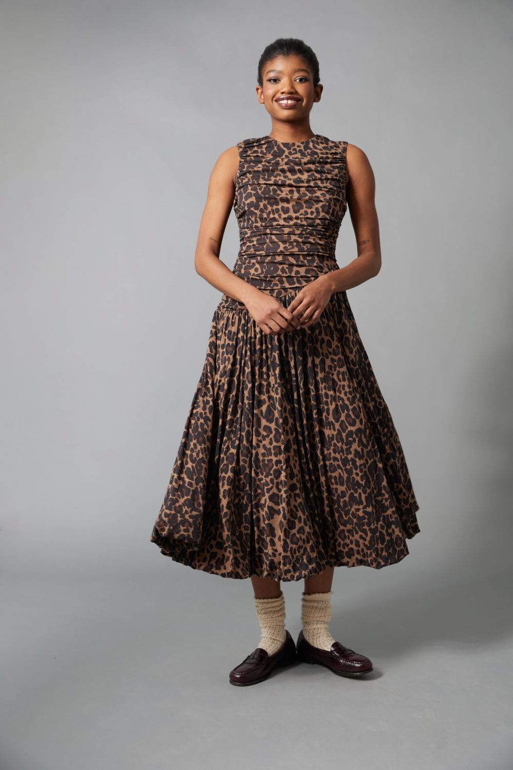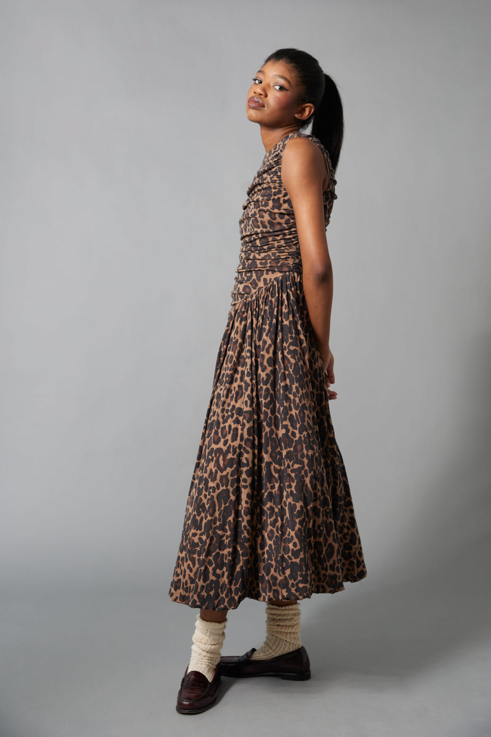 • Our sleeveless Jersey Overlay Frock has a jewel neck, shirred bodice, an asymmetric hip yoke, and a bubble skirt lined with cotton/spandex stretch poplin, and side seam pockets