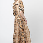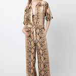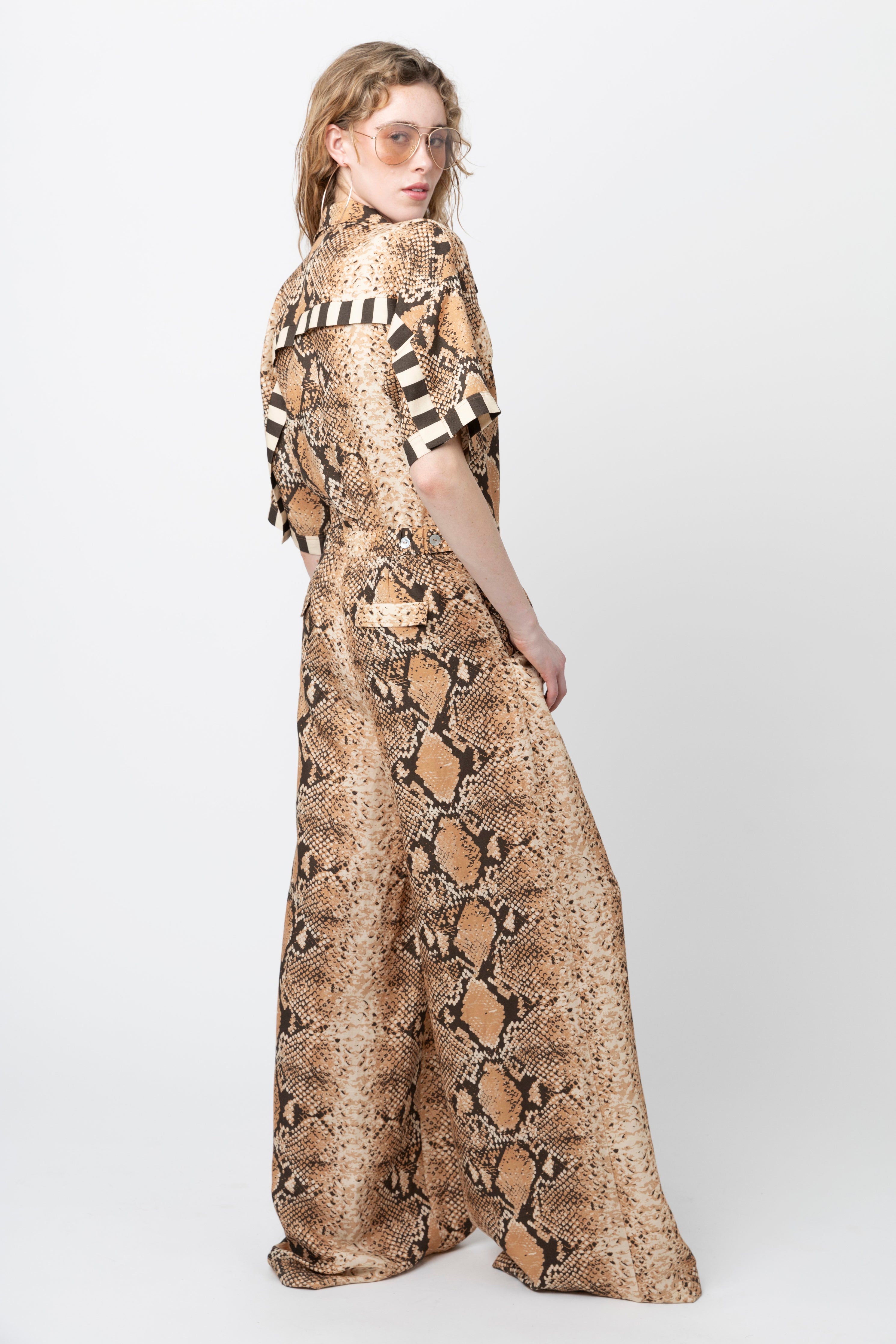 • Relaxed fit jumpsuit with contrast print flange details at front and back yoke.