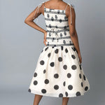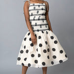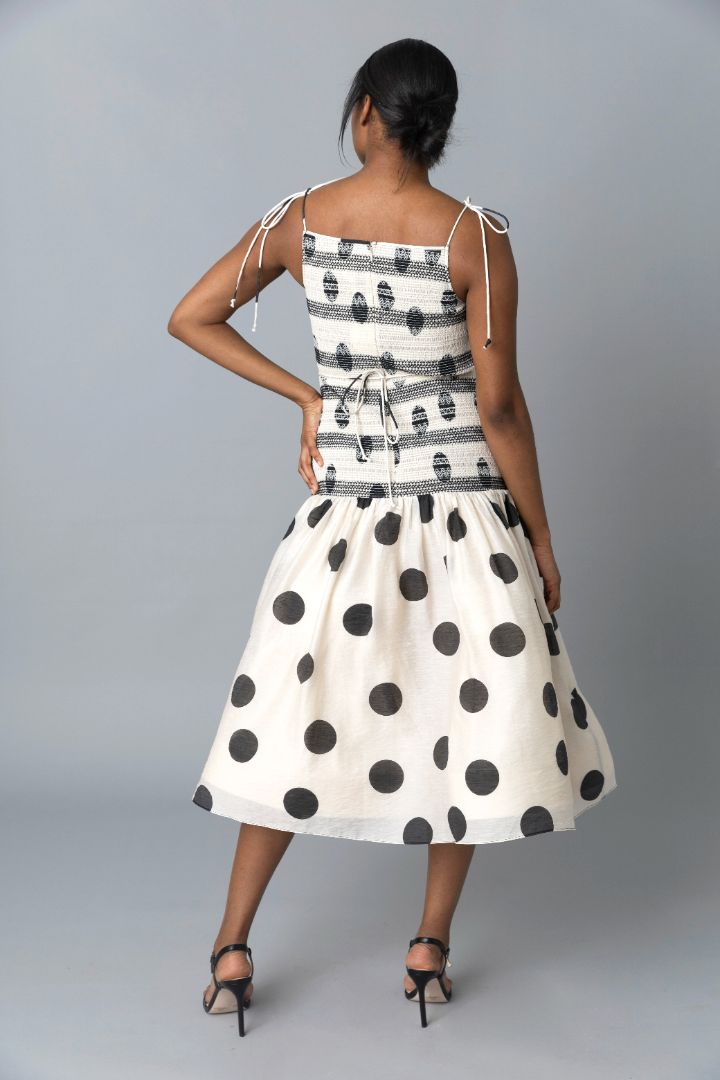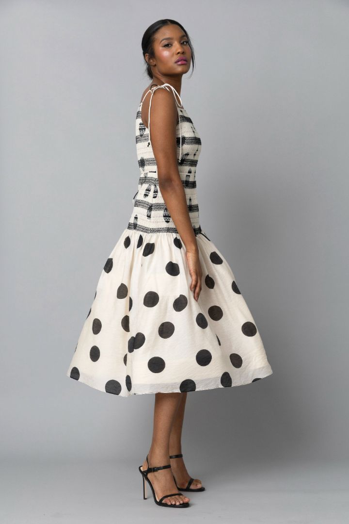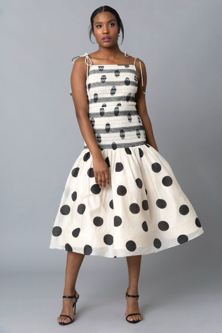 • As charming and classic as it’s namesake, the Audrey frock is a midi length dress with a cotton cord belt and self-tie spaghetti straps.