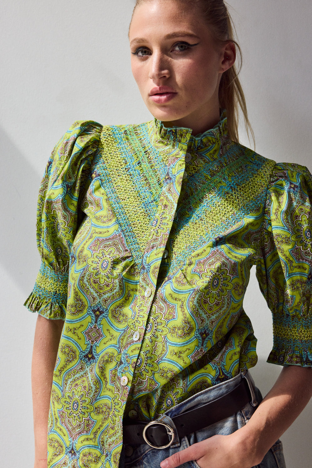 Short Sleeve Smocked Shirt