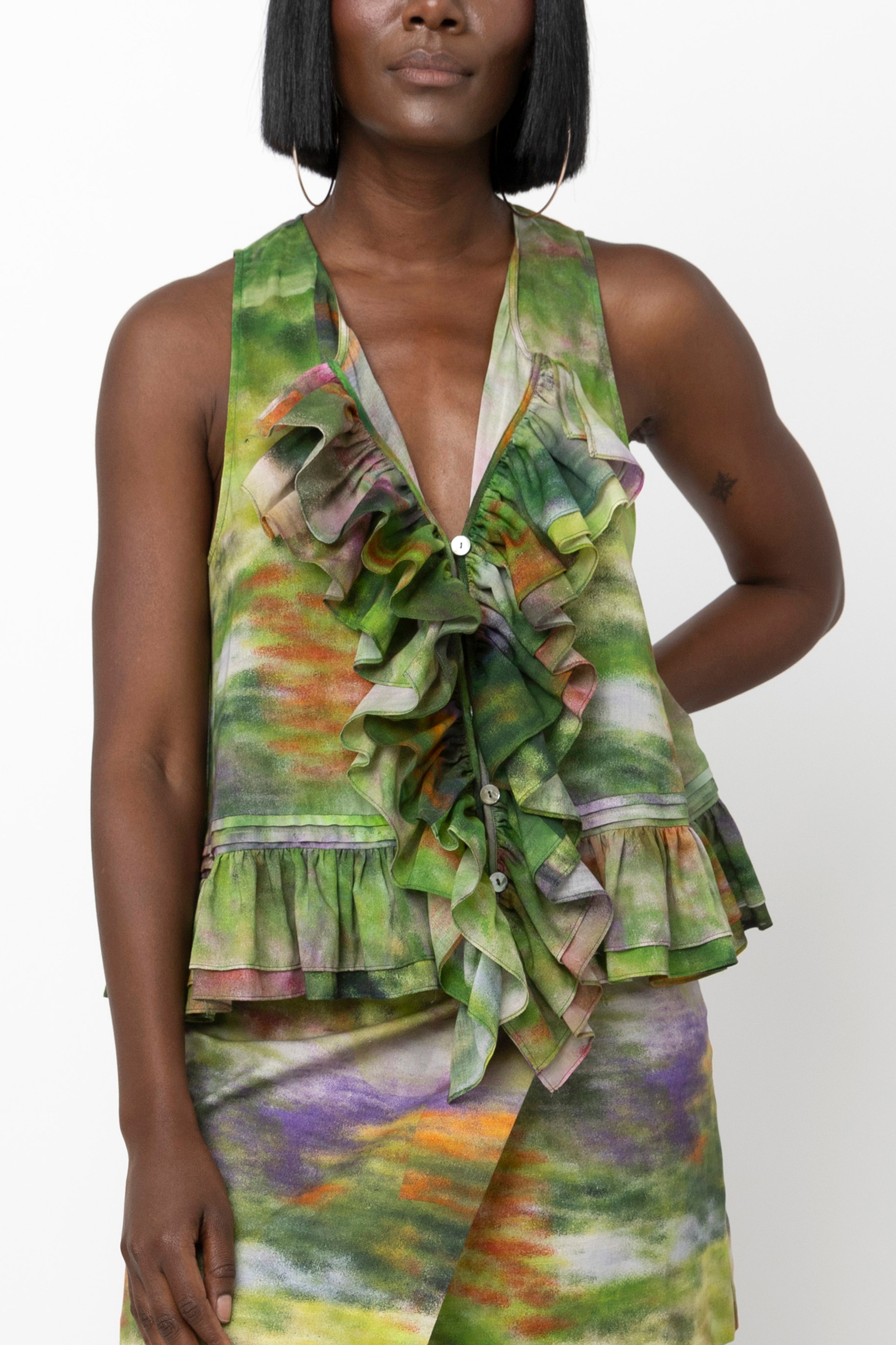 Sleeveless Frilled Buttondown