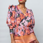 • V-neck blouse made in a slightly sheer Tencel blend. Blouse has an easy fit with top stitching details at the hip yoke.