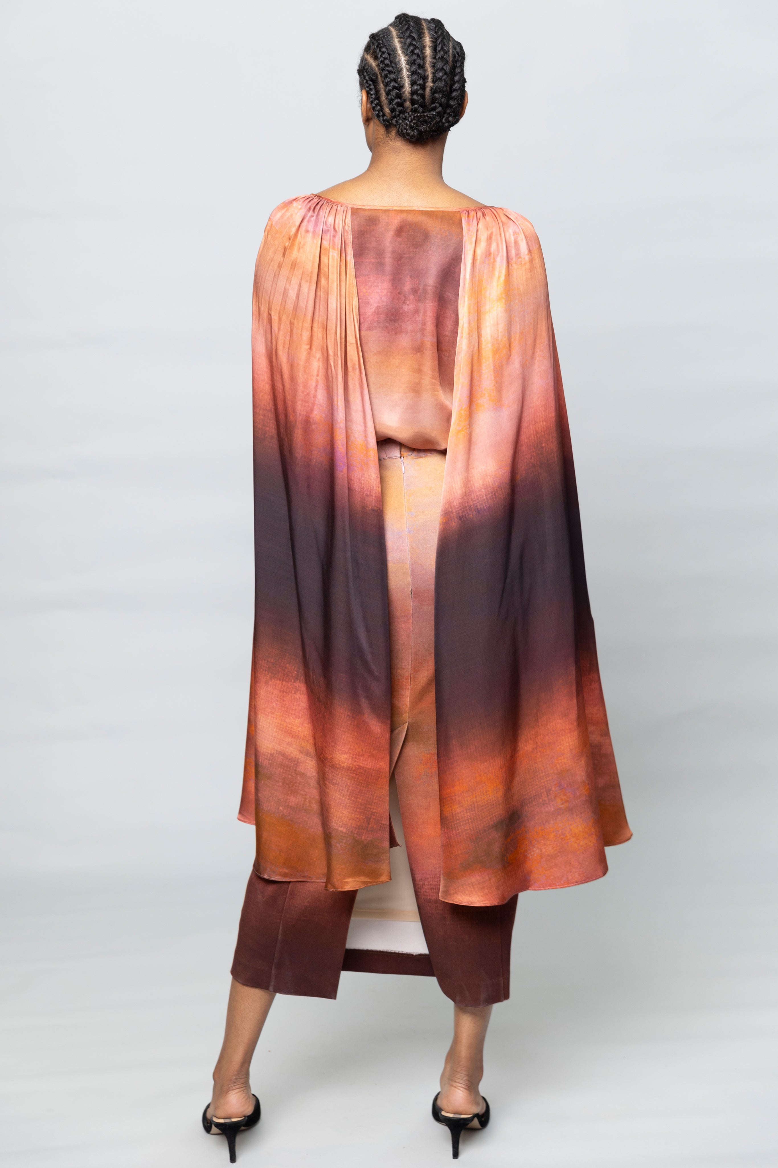 • Flowy V-neck blouse in satiny Tencel blend. Shirred sleeves are attached only at the neckline to allow movement.
