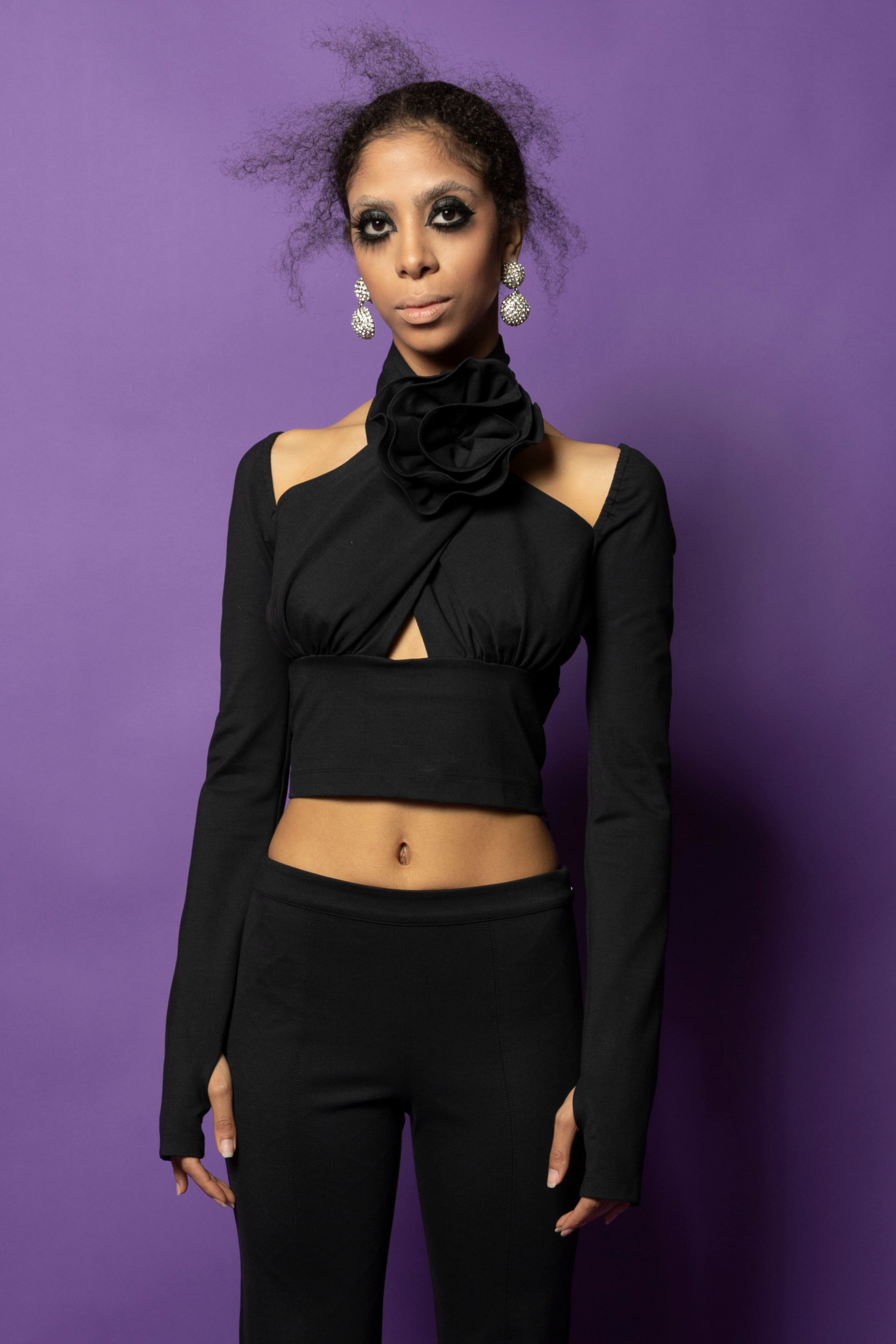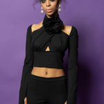 Printed cupro bias cut cami with asymmetric cowl neckline. Self fabric flower corsage at wearer's left neck. Cami measures 24 ½” from HPS. Corsage measures 5” in diameter.
