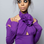 Printed cupro bias cut cami with asymmetric cowl neckline. Self fabric flower corsage at wearer's left neck. Cami measures 24 ½” from HPS. Corsage measures 5” in diameter.