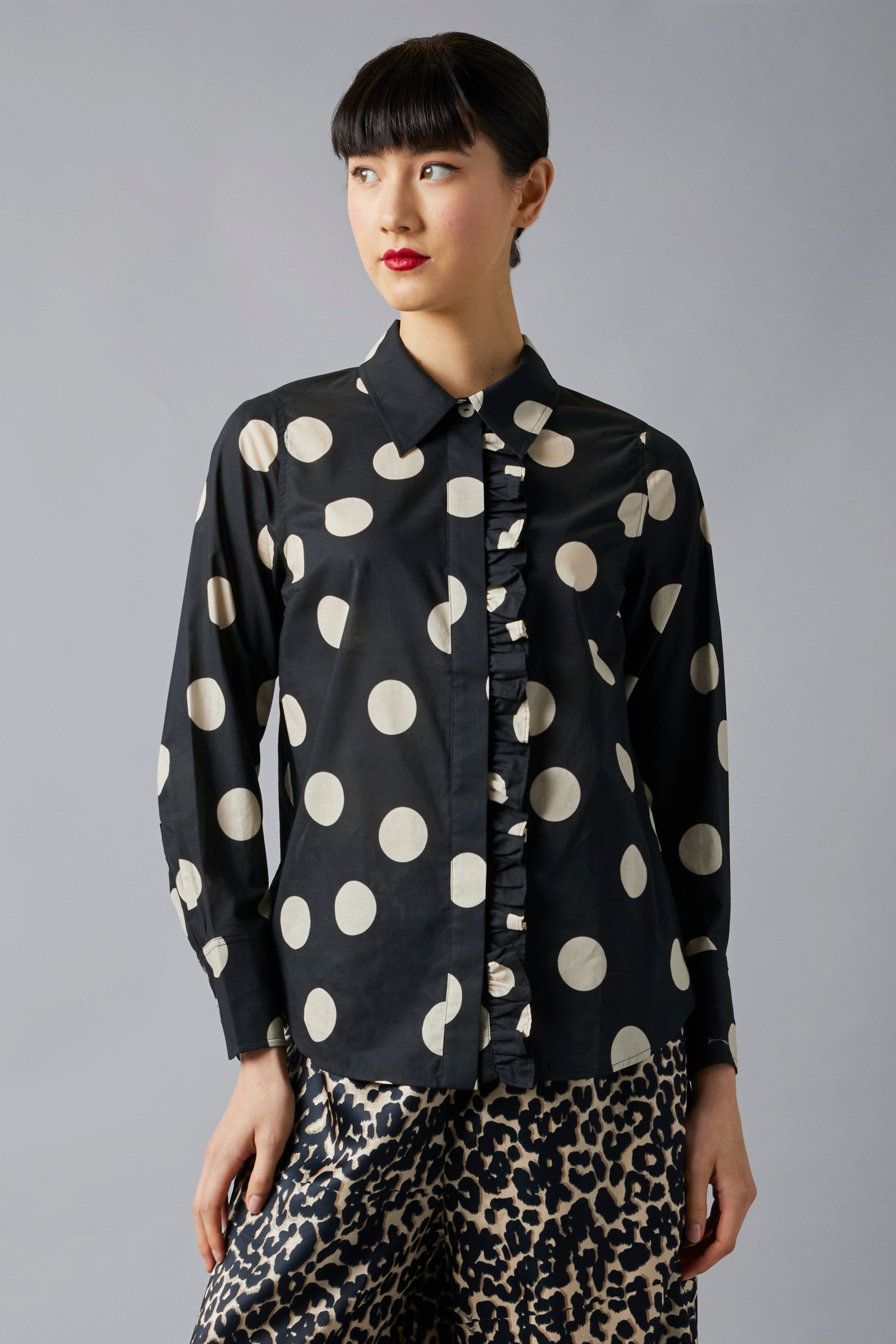 • Classic shirt with frill detail at front placket.