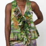 • Delicate frilled button front blouse in a soft and slightly sheer printed Tencel voile.