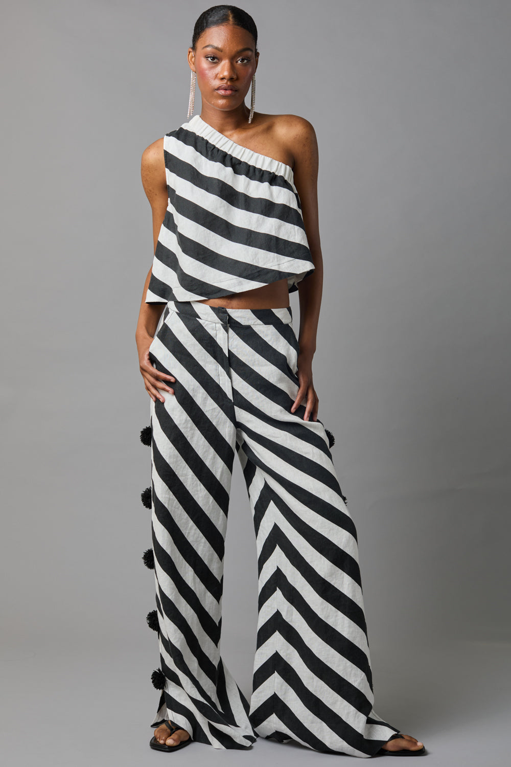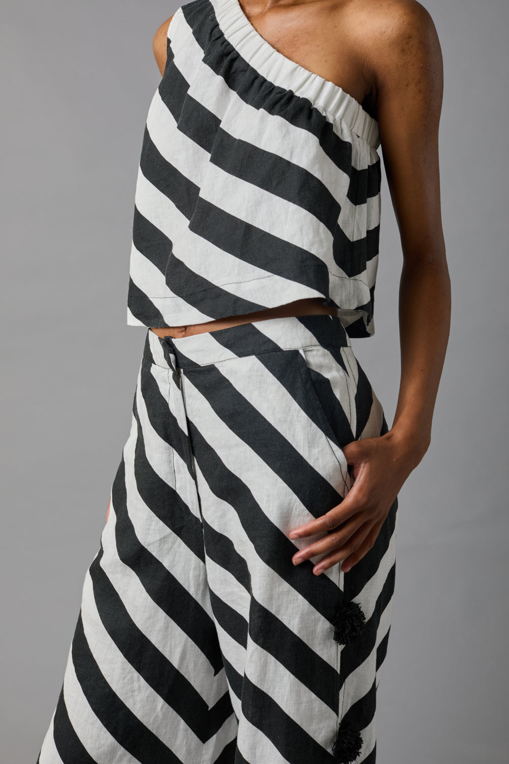 • Easy, one shoulder top has an elasticated neckline and gently flaring shell body.