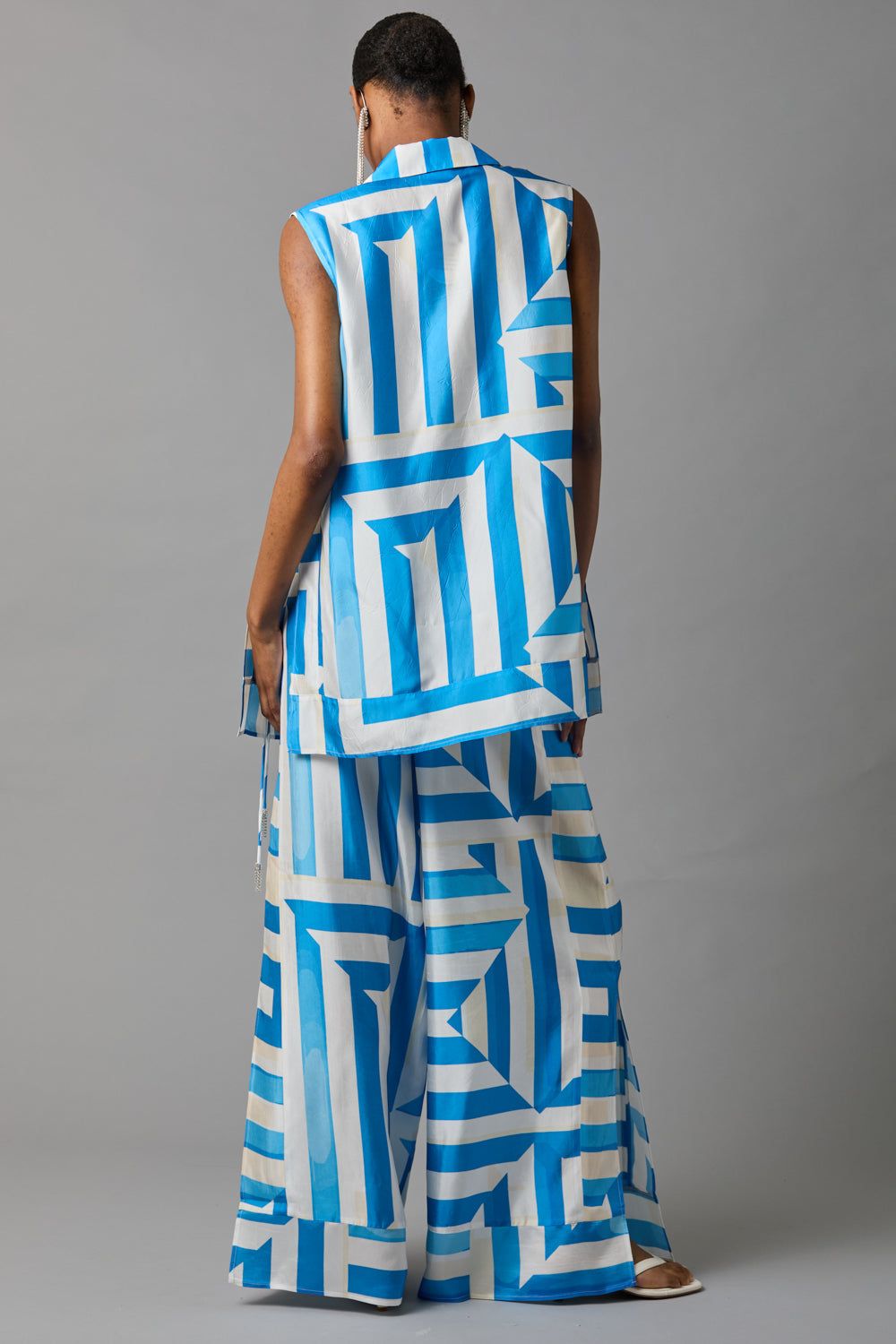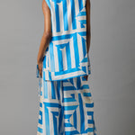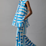 • Relaxed, tunic length, sleeveless shirt has high side slits and border print placements at front, hem and sides