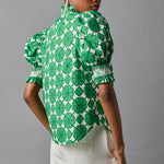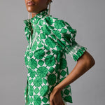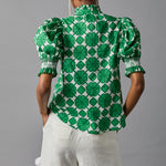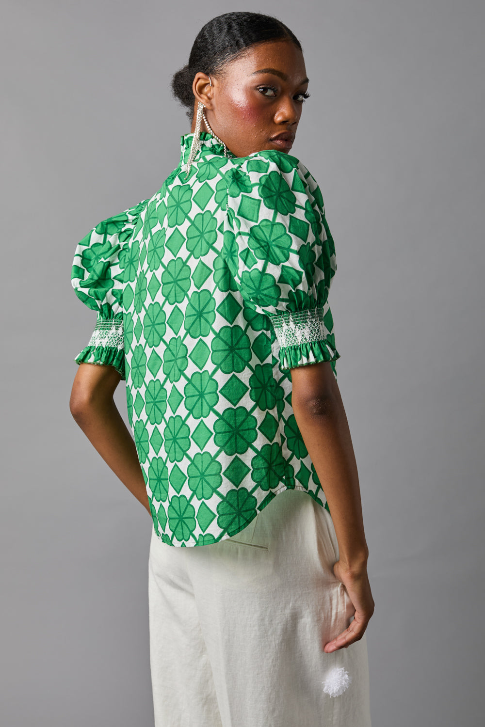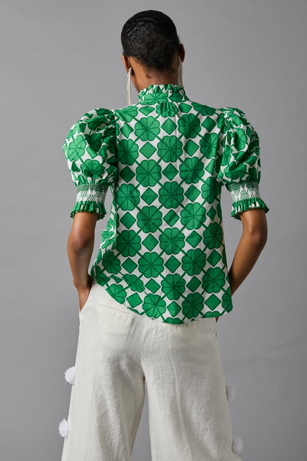• Classic shirt with smoked yoke and short puff sleeves in a soft organic cotton lawn.