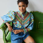 • Our classic Hope for Flowers smocked shirt in a crisp organic cotton poplin has a smocked front yoke, tailored collar details. Full statement sleeves have smocked cuffs.