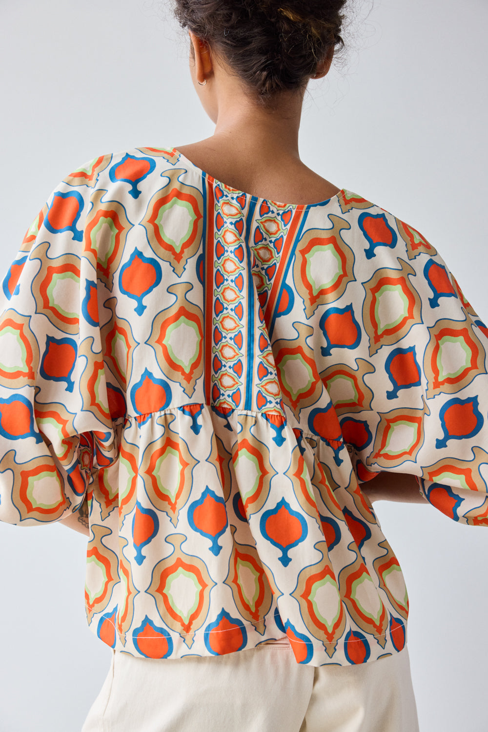 • Square neck blouse is a pull over style blouse with puff sleeves and shirring all around.