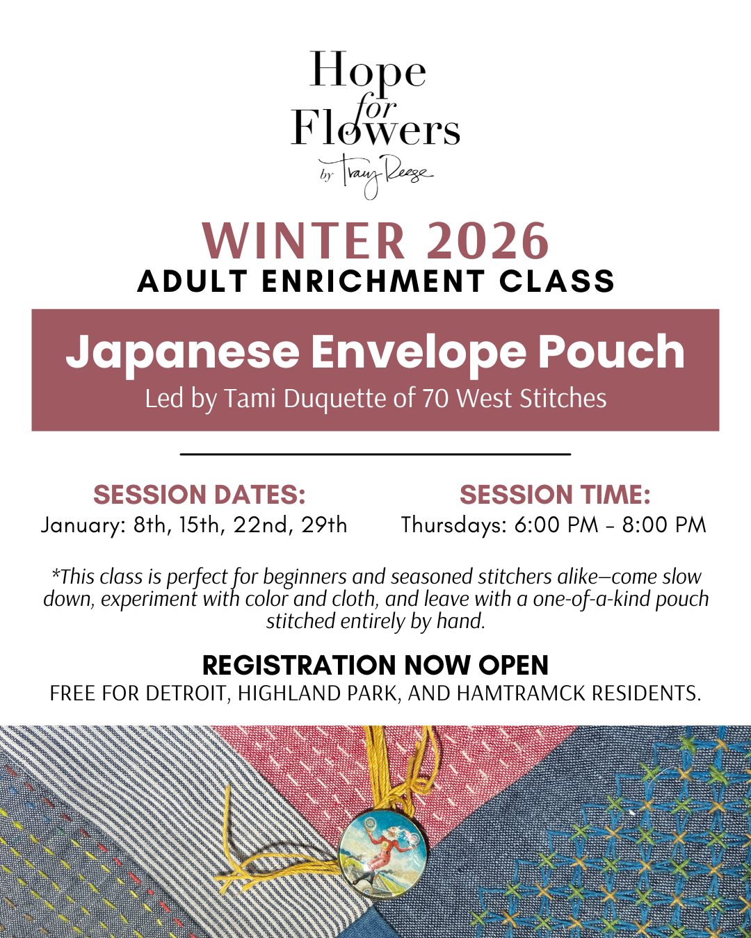 All Hope for Flowers Artisan Studio Programming is free for residents in Detroit, Highland Park, or Hamtramck thanks to the generous support of our sponsors and funders.