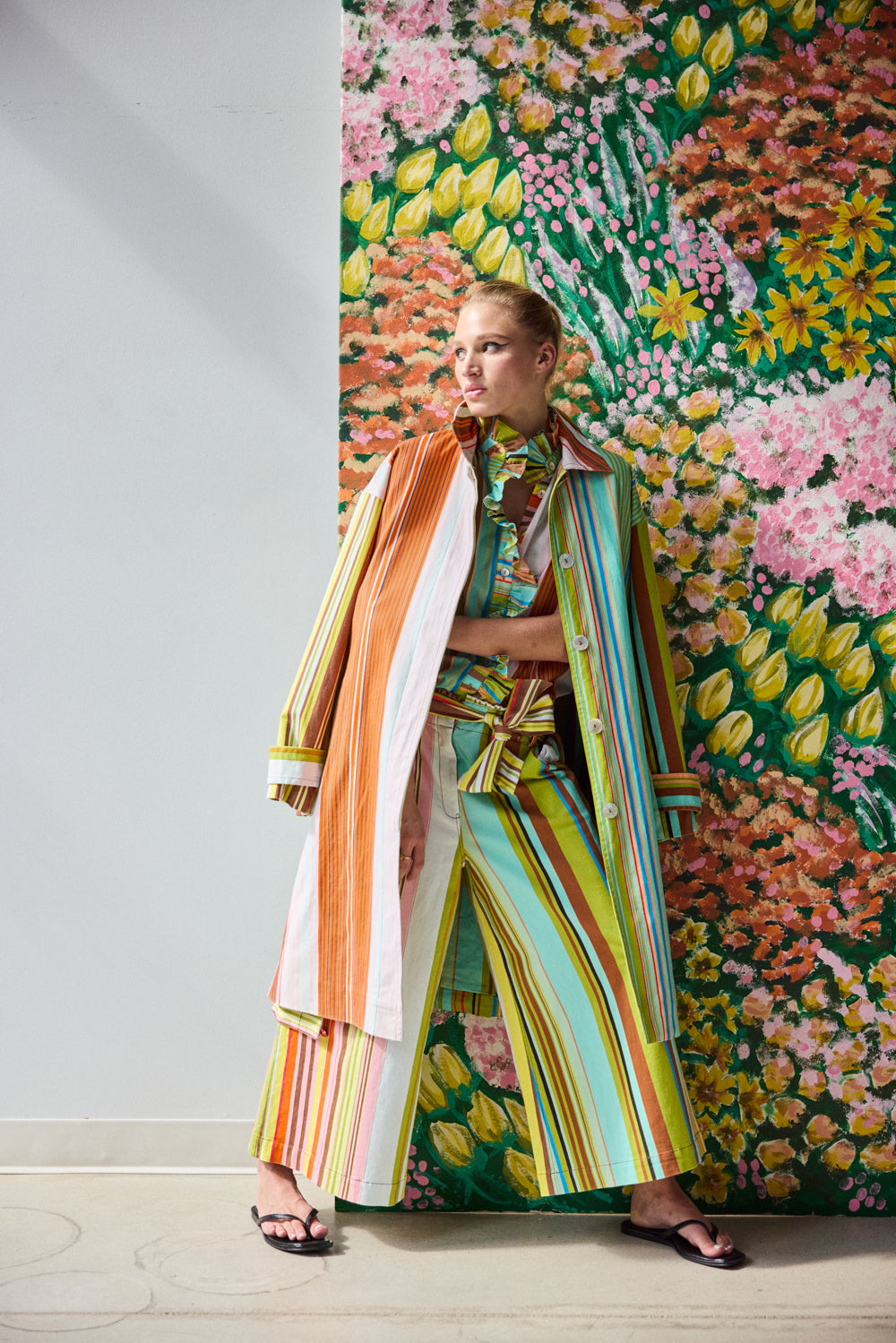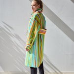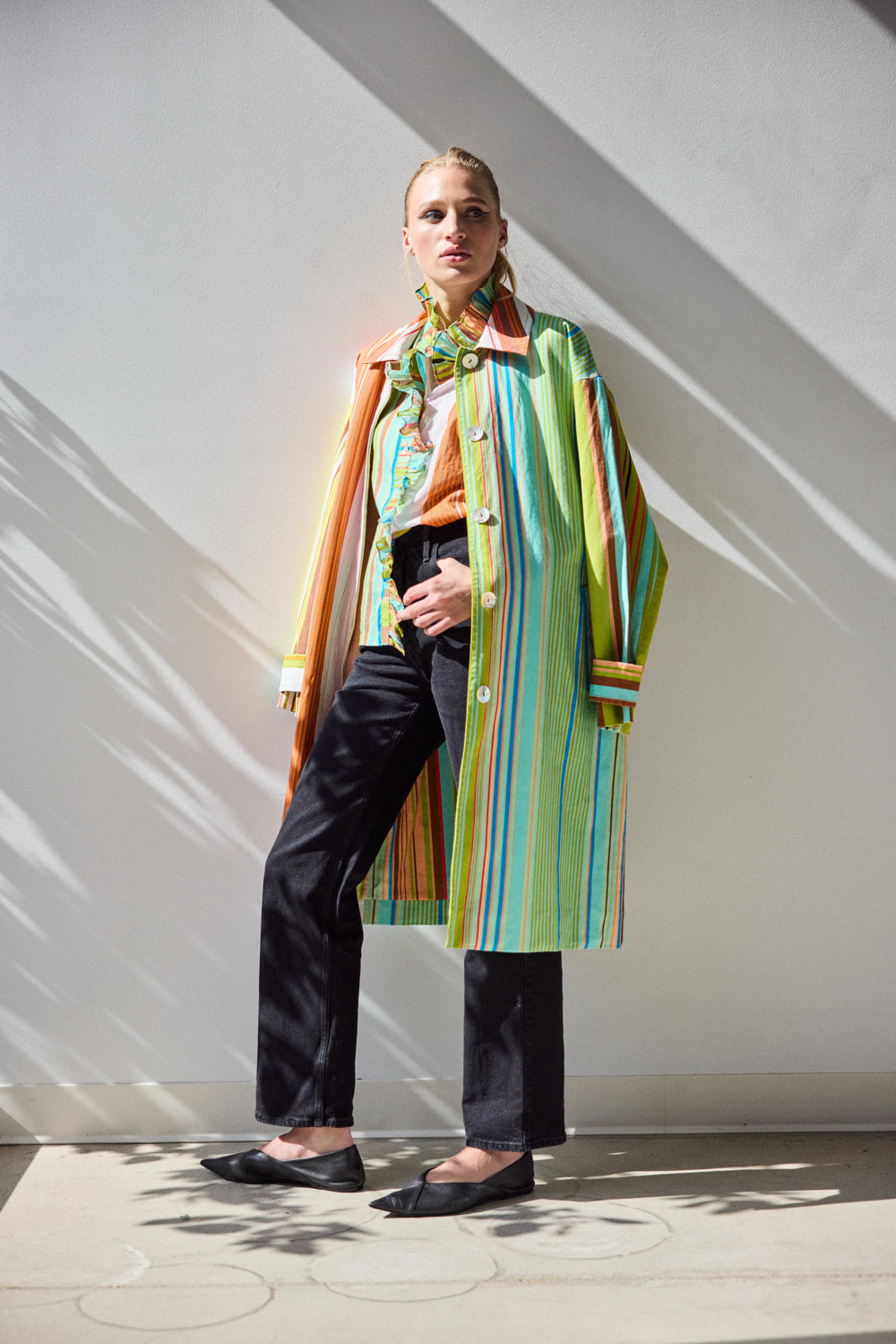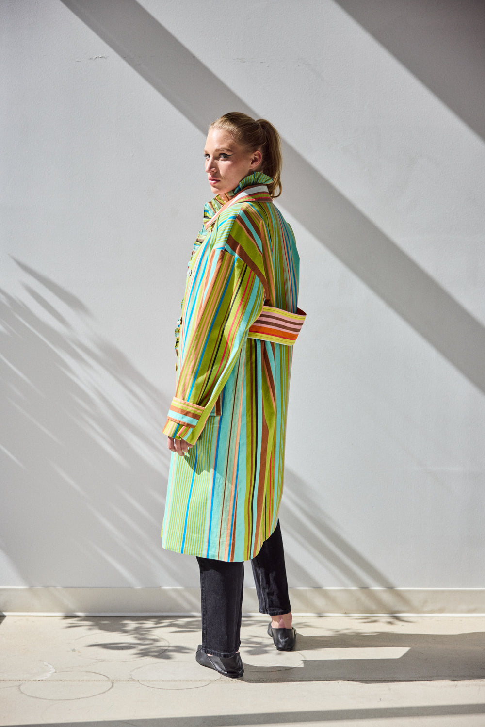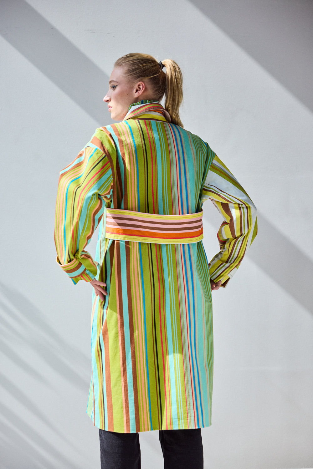 • Slightly oversized coat with faux belt and fully lined with self fabric.