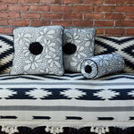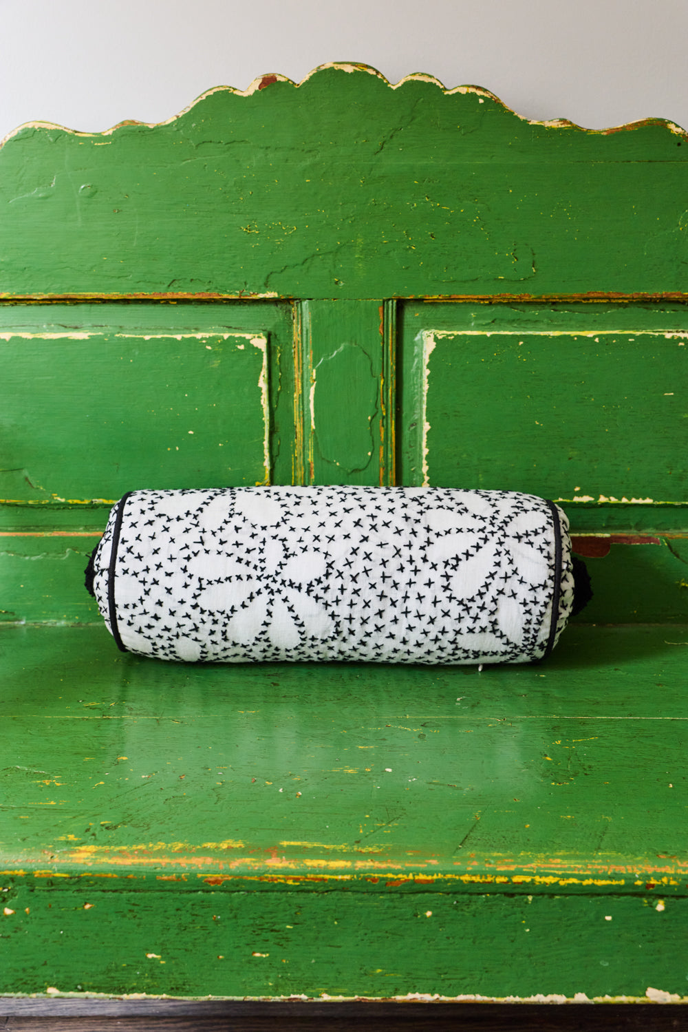 • Our 16” neckroll cushion is made from white linen hand embroidered by artisans in India.