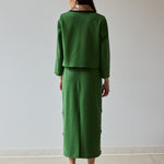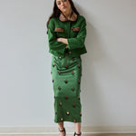 • Fitted pencil skirt in Naia satin with beautiful sequined and hand-beaded embellishments at the front and organic cotton knit at the back . The skirt has front and back darts, a slit at center back and an elasticated back waist for flexible fit.