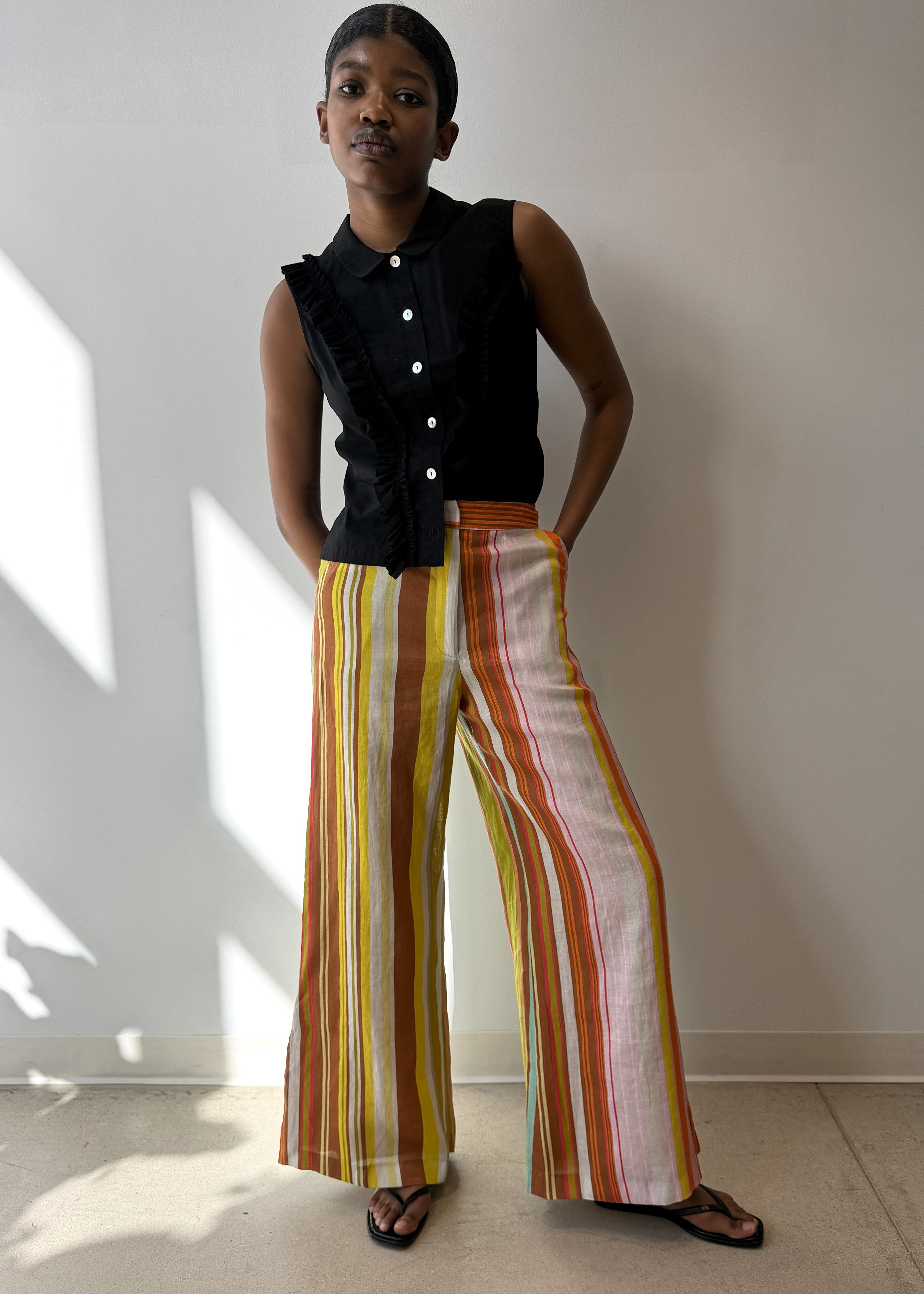 • Relaxed fit pants with side slit detailing, off seam pockets at front and fully lined in cotton lawn.